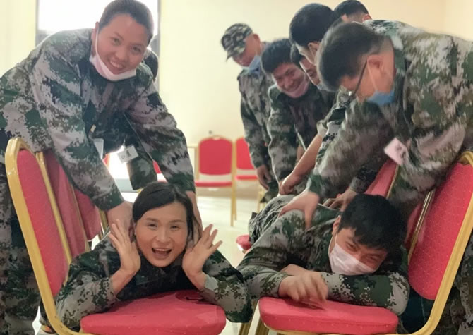 “領(lǐng)袖風(fēng)采”這個項目對大家的影響和震撼太大了,以前每個人有很多想不明白的問題和對領(lǐng)導(dǎo)的不解,通過這個項目讓大家豁然開朗。開始大家以為只是在玩游戲,但當(dāng)每輪比賽過后,輸了的隊伍,隊長和副隊長受到懲罰做俯臥撐的時候,在場的每一個人都有深深的體會,那就是由于我們的過錯和失誤,導(dǎo)致我們的隊長和副隊長要接受這樣的懲罰,這懲罰本來應(yīng)由我們承受。在那一刻,我們理解了什么是領(lǐng)導(dǎo),我們常常看到領(lǐng)導(dǎo)風(fēng)光的一面,從沒有想過領(lǐng)導(dǎo)背后承擔(dān)著怎么樣的責(zé)任。我們都很自責(zé),當(dāng)時為什么就不能做的更好一點呢?