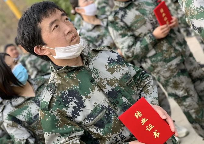“立正、稍息、向右看齊、向前看”,教官的一系列口令,讓大家再次“熟悉”站軍姿。